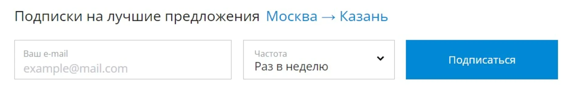 Если хочется подождать более выгодного предложения, можно оформить подписку на уведомления: мы предложим сделать это после поиска билета. Информация о билетах на избранные направления будет приходить вам на почту. Это бесплатно и очень удобно — как только стоимость билетов изменится, вы сразу об этом узнаете.