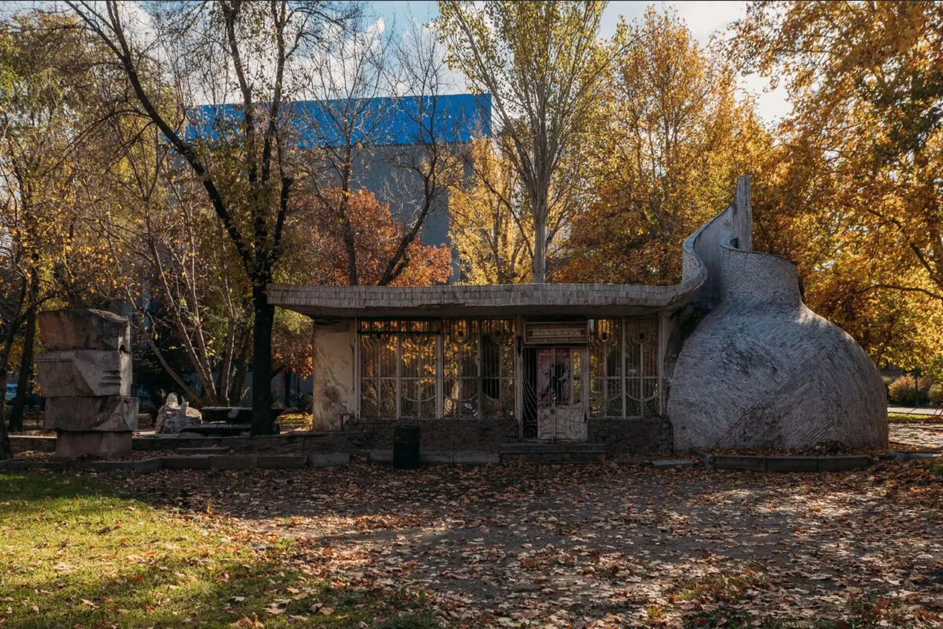 В Театральном парке вас удивит необычная архитектурная постройка — бывший магазин сувениров, а сейчас пустующий павильон «Улитка». Это знаковый городской объект, который интересен своей округлой формой, напоминающей раковину улитки.