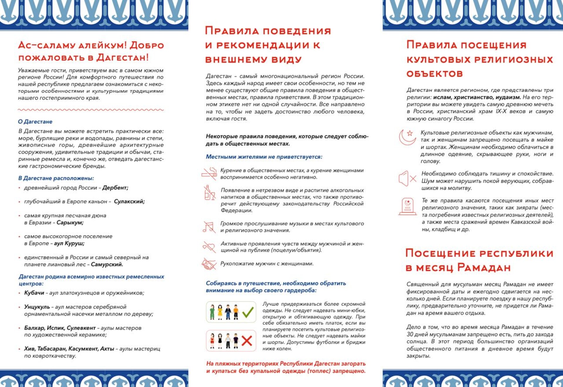 В 2023 году Министерство туризма Дагестана разработало специальную памятку для туристов, в котором собраны основные правила посещения страны, полезные ресурсы для туристов и в том числе дресс-код.