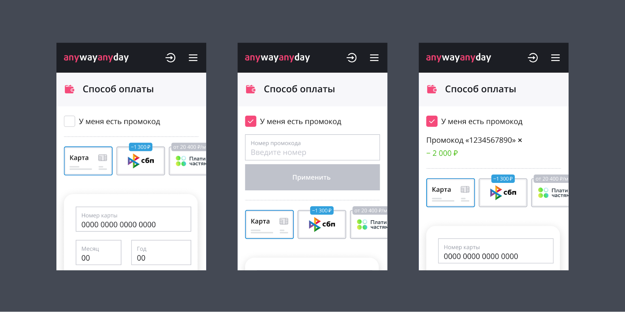 В Anywayanyday к одному заказу можно применить только один промокод.