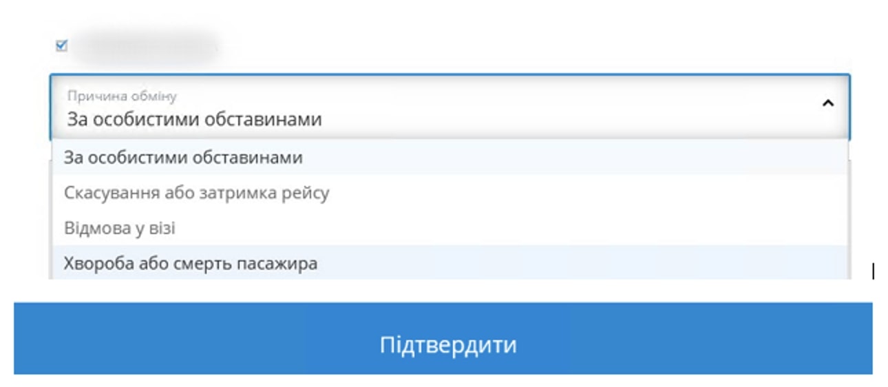 -Вибрати пасажирів, чиї квитки ви хочете обміняти;